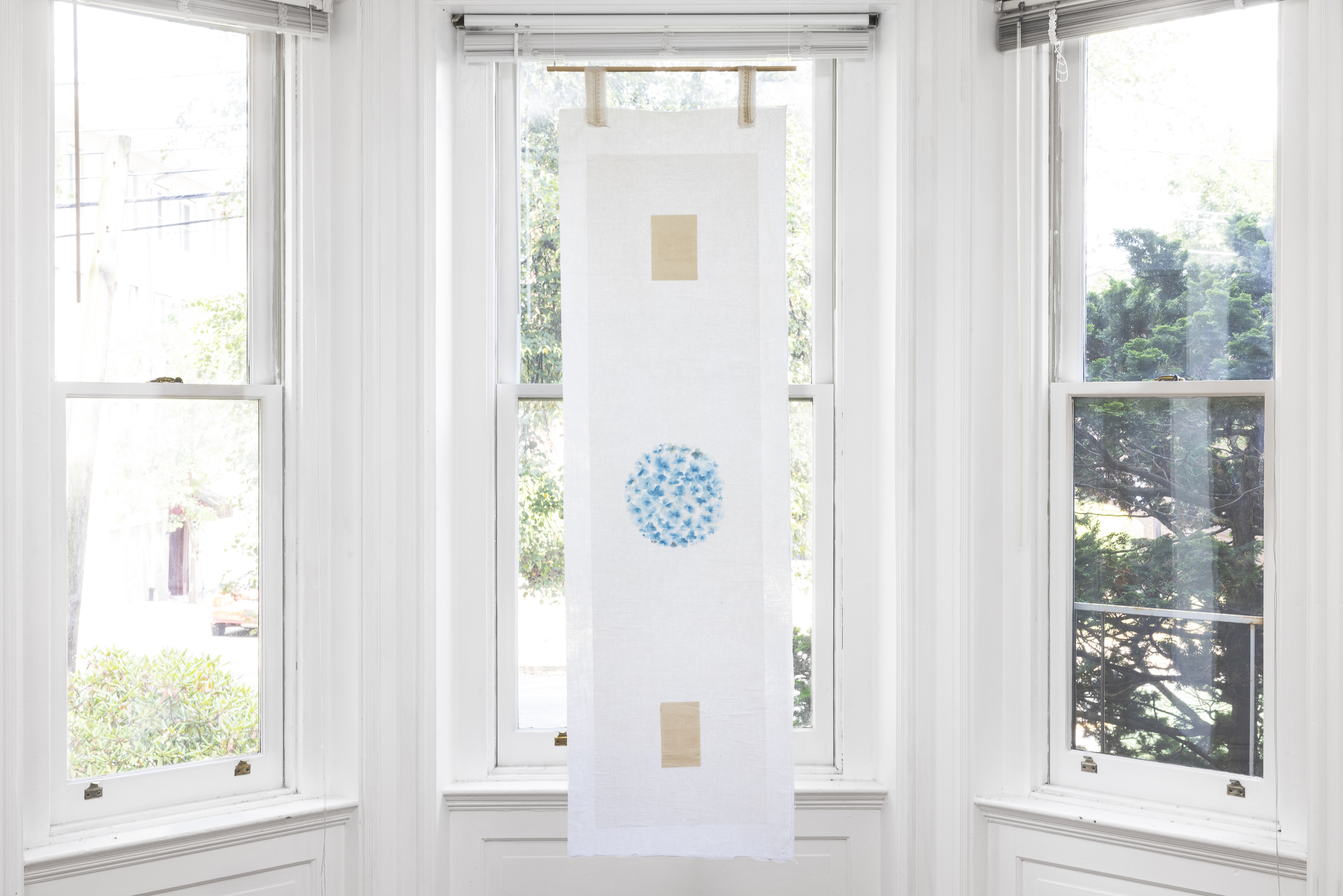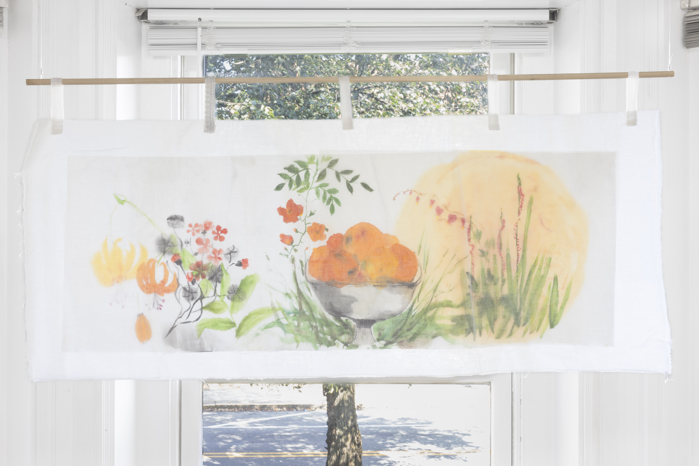 This presentation brings together works by Naomi Hawksley, Ingrid Yi-Chen Lu, and Emilia Wang, in which the artists surface their inner worlds through craft and the handmade. Across the paintings anddrawings on view, structures of containment and suspension appear alongside motifs of accumulation and erasure. Together they pose the question: what arewe expected to hold—emotionally, so-cially, and metaphysically? Through a sustained engagement with tactile and abstract form, these artiststrace the material dynamics that shapeour sense of place and home, tied todiasporic movement and intimationsof transcendence within the everyday. These gestures carry moral and mystical weight through reflections intimacy and estrangement.